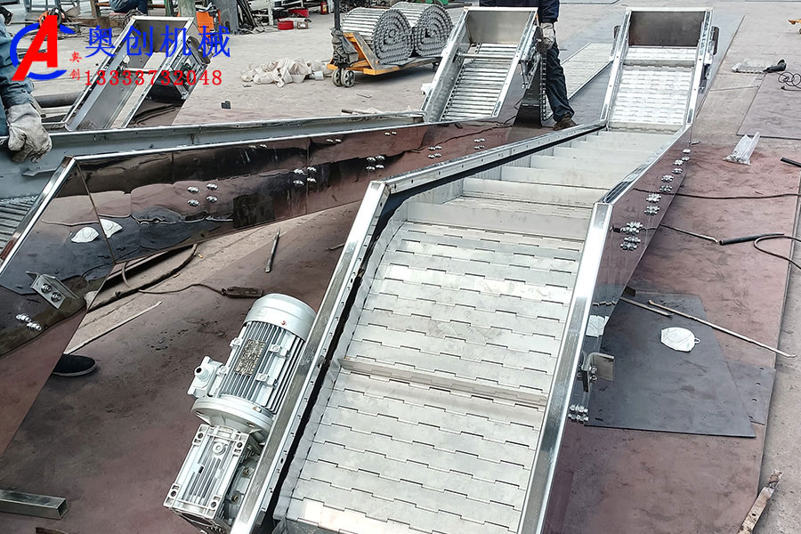 鏈板輸送機簡介鏈板輸送機是一種以標準鏈板為承載面,由馬達減速機為動力傳動的傳送裝置。鏈板式輸送機,由...